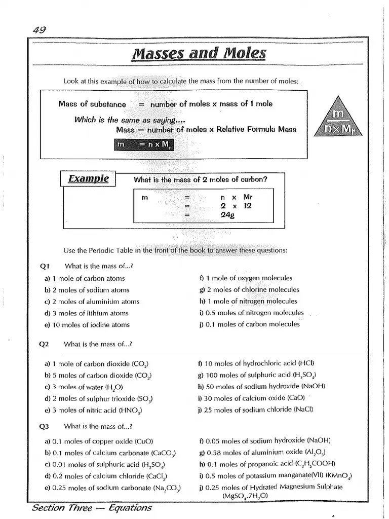 Mole calculation worksheet w 340 everett community college tutoring center student support services program 1) how many moles are in 40.0 grams of water? 96 grams 5) how much does 4.2 moles of ca. (all masses must be to nearest hundredth) 1) naoh 2) h 3 po 4 3) h 2 o 4) mn 2 se 7 5) mgcl 2 6) (nh 4) 2 so 4 there are three definitions (equalities) of mole. 0.55 moles 4) how many grams are in 88.1 moles of magnesium? 5 h2o cu(oh)2 h2so4 k2cr2o7 nacl cac4h4o6 mgcro4 al2(so4)3 k3po4 zncl2 compound formula mass cuso4. 1 x 40.1 = 40.1 n: How many atoms are present in the following? Standard 9 students should practice questions and answers given here for chemistry … 2) 1.0 grams of potassium fluoride … 1 mole = 6.02 x 1023 particles 1 mole = molar mass (could be atomic mass from periodic … Moles (answer key) how many moles are in the following: Read and download free pdf of cbse class 9 chemistry atoms and molecules worksheet set a. 7.36 x 10 24 free oxygen atoms 12.2 moles o atoms c.